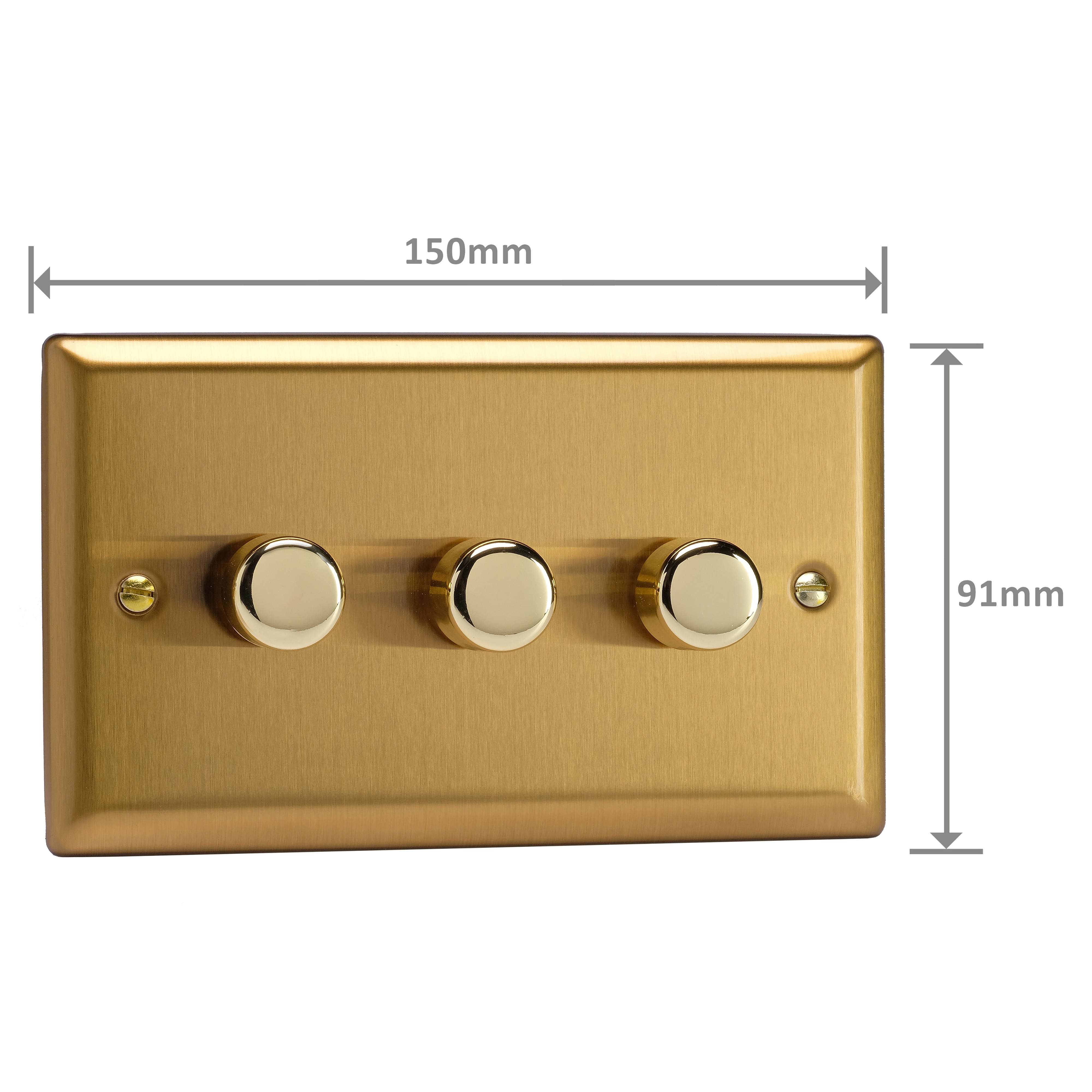 Product Description: 3-Gang 2-Way V-Pro Push On/Off Rotary LED Dimmer 3 x 0-120W (Twin Plate)