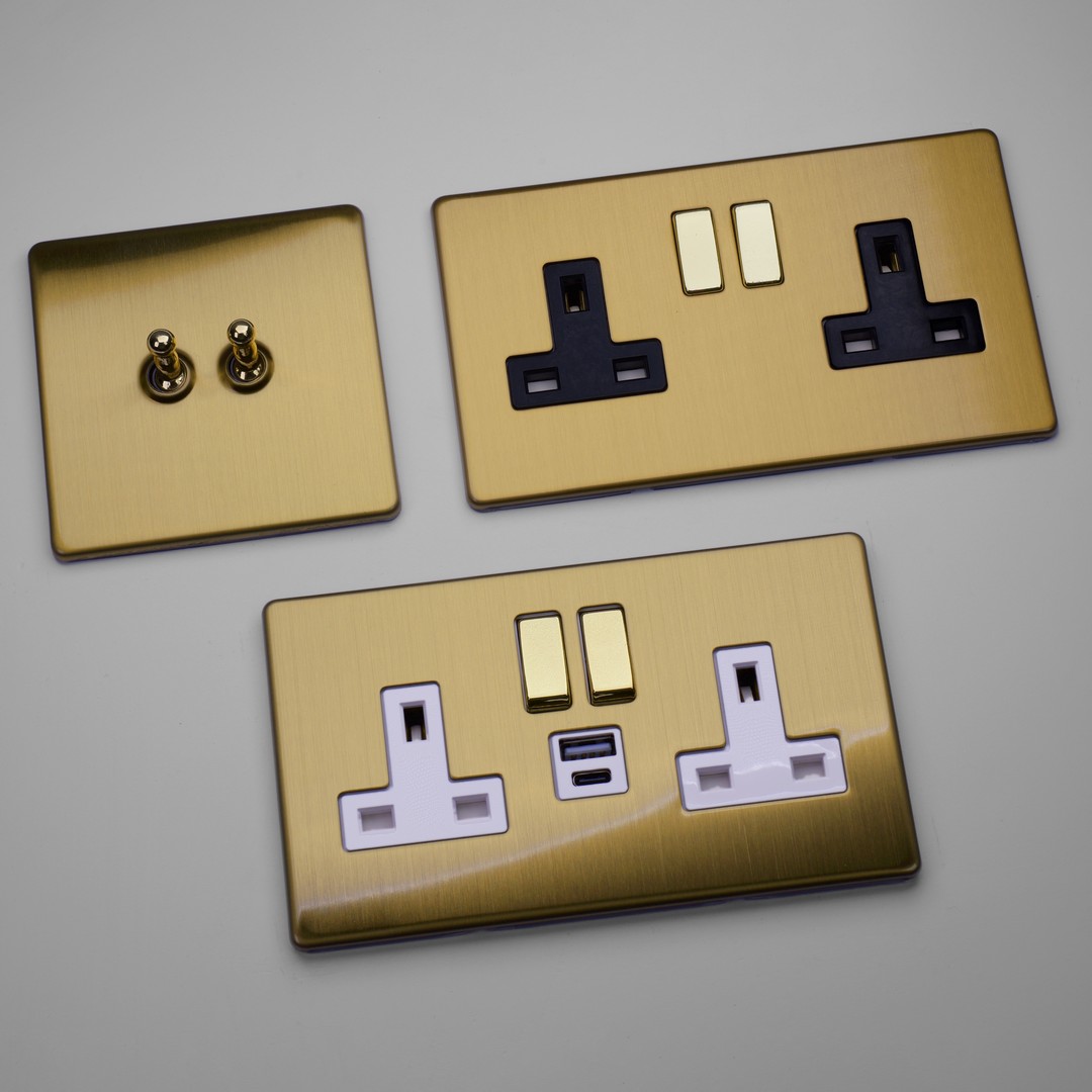 The Brushed Brass finish combines vintage style with a modern twist to suit both a traditional or modern decor. Black or white inserts are available, paired with polished brass rockers for an added touch of class. Varilight Decorative wiring accessories are British made and covered by the Varilight lifetime guarantee.