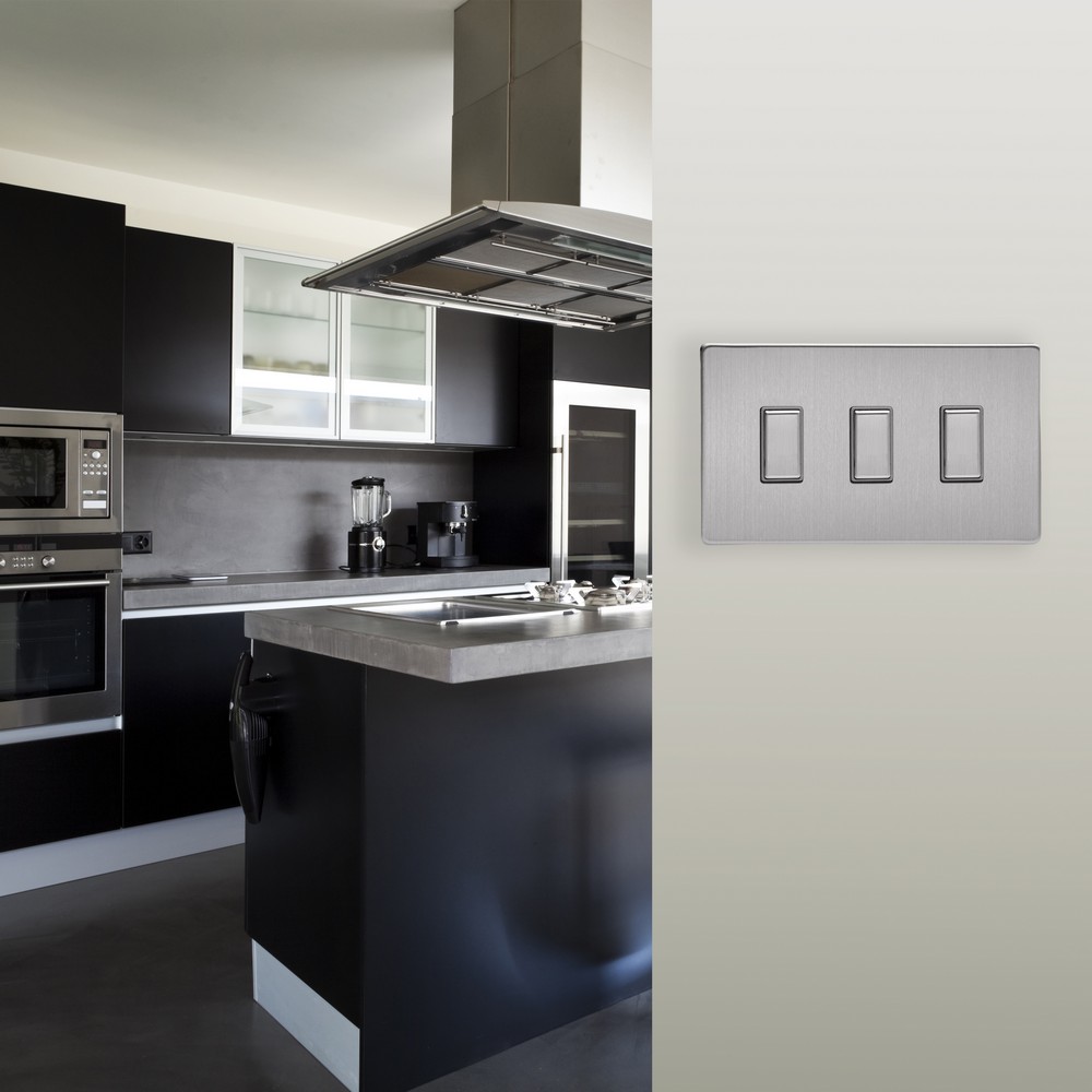 Stunning Brushed Steel is perennially popular with interior designers and all those wanting accessories with timeless appeal. Paired with black or white inserts and matching brushed steel rockers. Varilight Decorative wiring accessories are British made and covered by the Varilight lifetime guarantee.