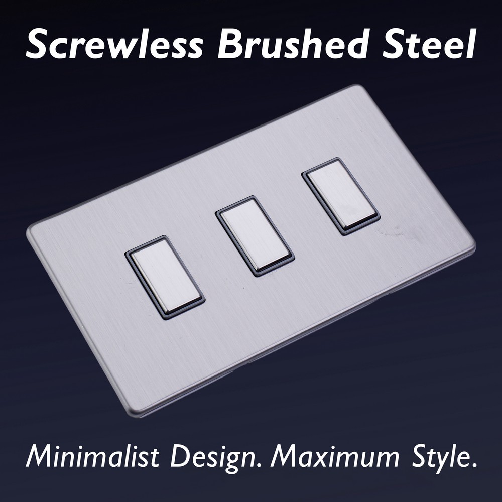 Screwless Low Profile: minimalist design with clip-on faceplates and hidden fixings for a smooth, modern look. The Screwless Metal faceplates are expertly manufactured in the UK to the highest standard.