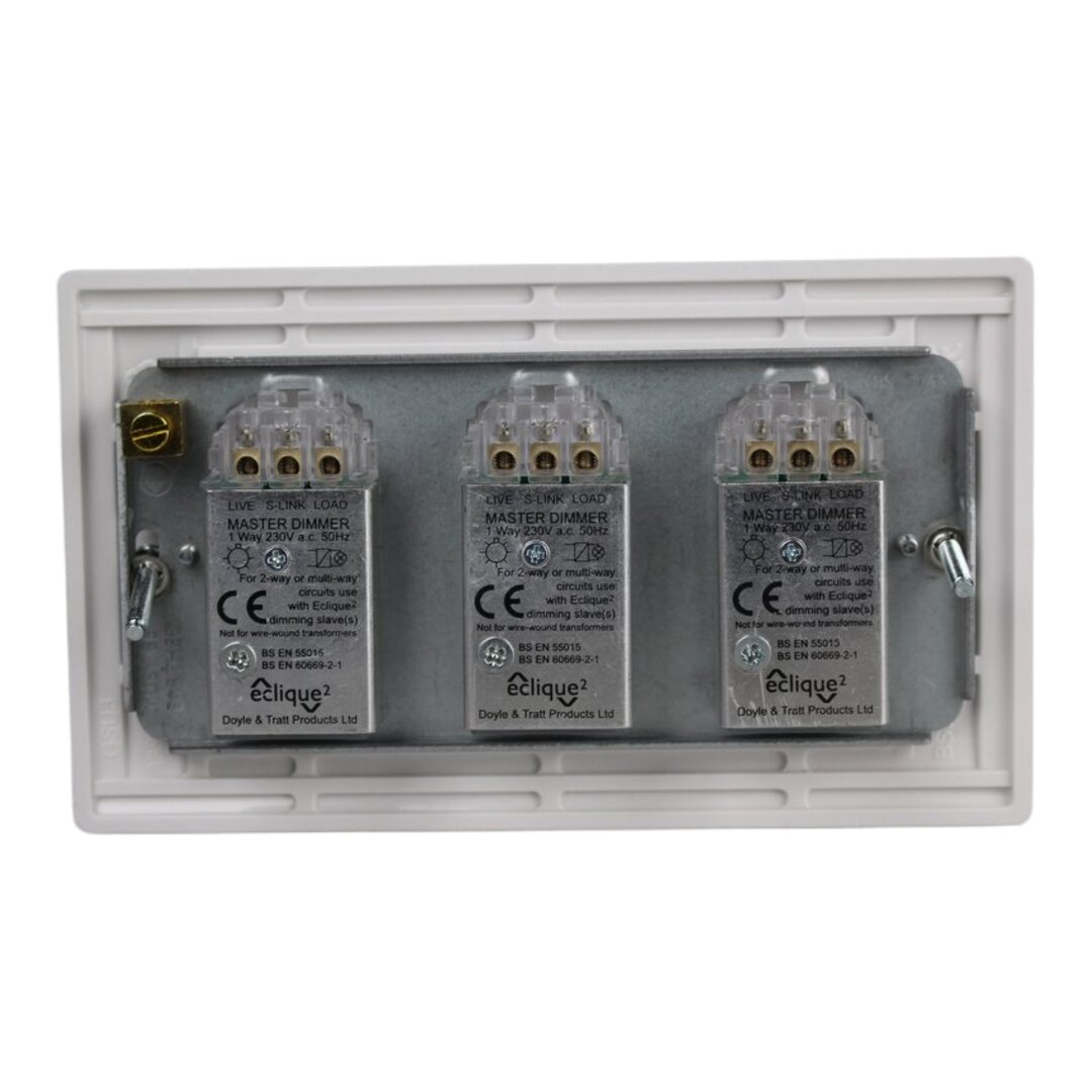 Product Description: 3-Gang Multi-Way Touch Master LED Dimmer 3 x 0-100W (Twin Plate)