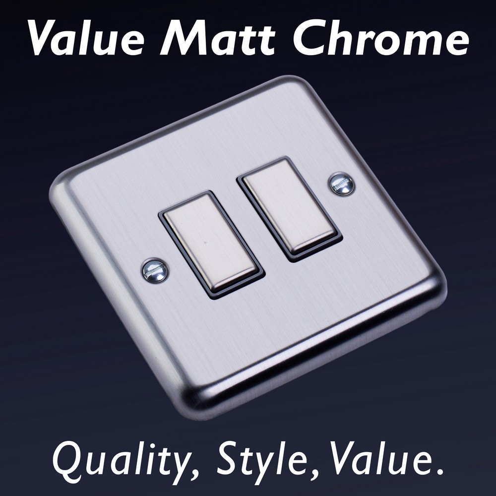 Matt Chrome offers unbeatable value for those seeking a beautiful Decorative finish at a great price point. Choose between black, white or matching metal rockers. Varilight Decorative wiring accessories are British made and covered by the Varilight lifetime guarantee.