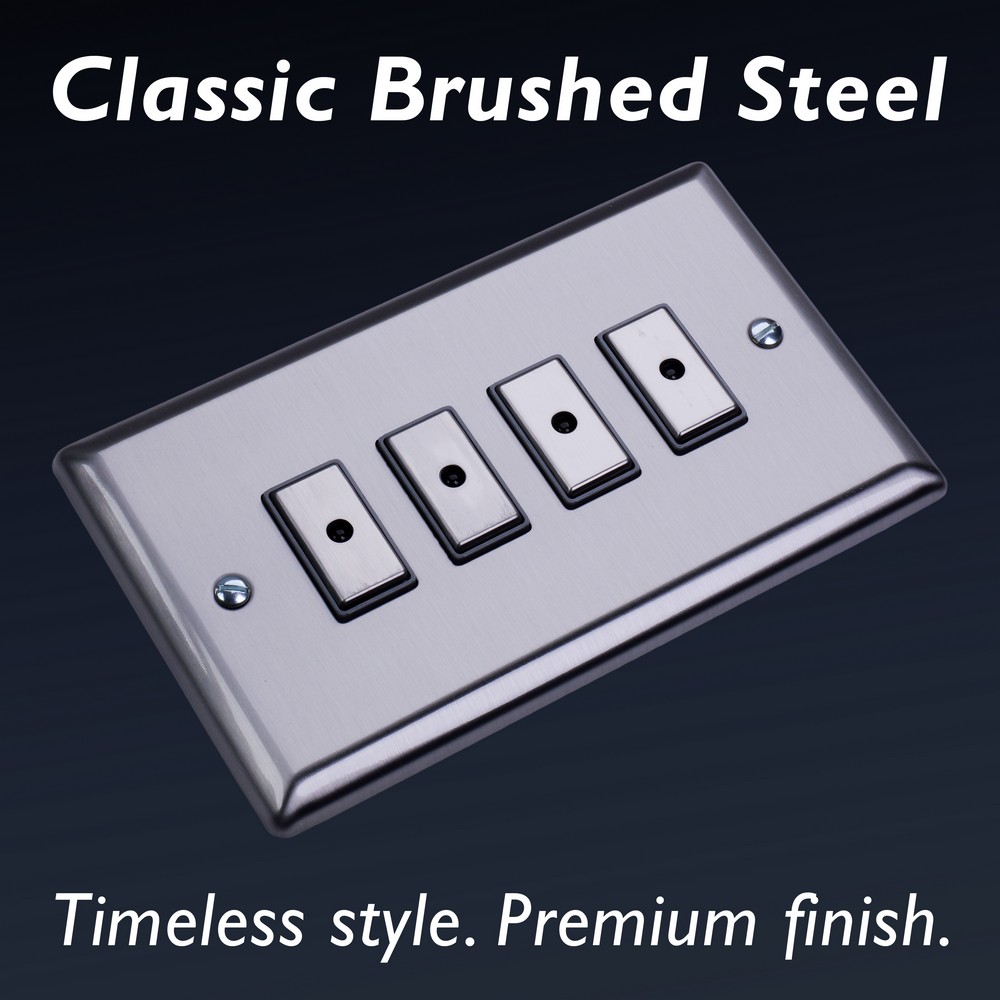 With its clean, understated style, Brushed Steel brings effortless sophistication to any room ? a finish chosen by designers for its versatility.Varilight Decorative wiring accessories are British made and covered by the Varilight lifetime guarantee.