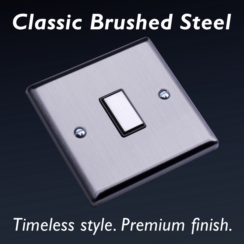 With its clean, understated style, Brushed Steel brings effortless sophistication to any room ? a finish chosen by designers for its versatility.Varilight Decorative wiring accessories are British made and covered by the Varilight lifetime guarantee.