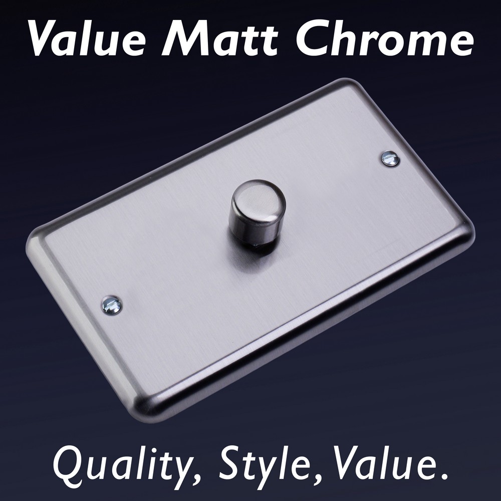 Matt Chrome offers unbeatable value for those seeking a beautiful Decorative finish at a great price point. Choose between black, white or matching metal rockers. Varilight Decorative wiring accessories are British made and covered by the Varilight lifetime guarantee.