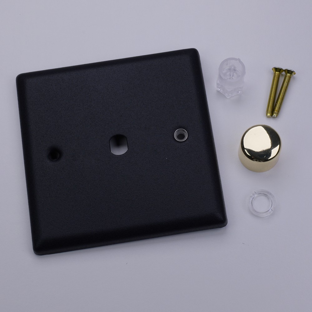 The Matt Black finish is powder-coated to give a tactile, textured finish, which is tough, durable and resistant to fingerprints and is elevated here with the signature brass detailing of the Vogue Collection. Varilight Decorative wiring accessories are British made and covered by the Varilight lifetime guarantee.