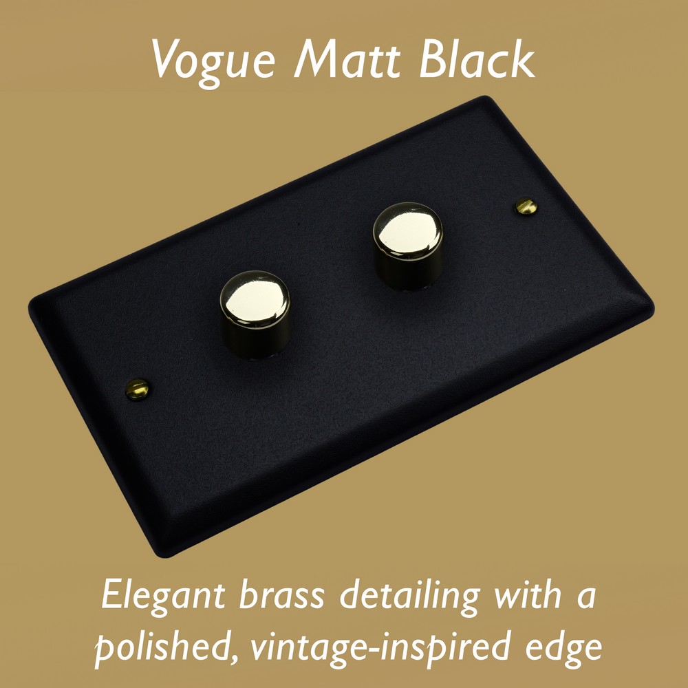 The Matt Black finish is powder-coated to give a tactile, textured finish, which is tough, durable and resistant to fingerprints and is elevated here with the signature brass detailing of the Vogue Collection. Varilight Decorative wiring accessories are British made and covered by the Varilight lifetime guarantee.