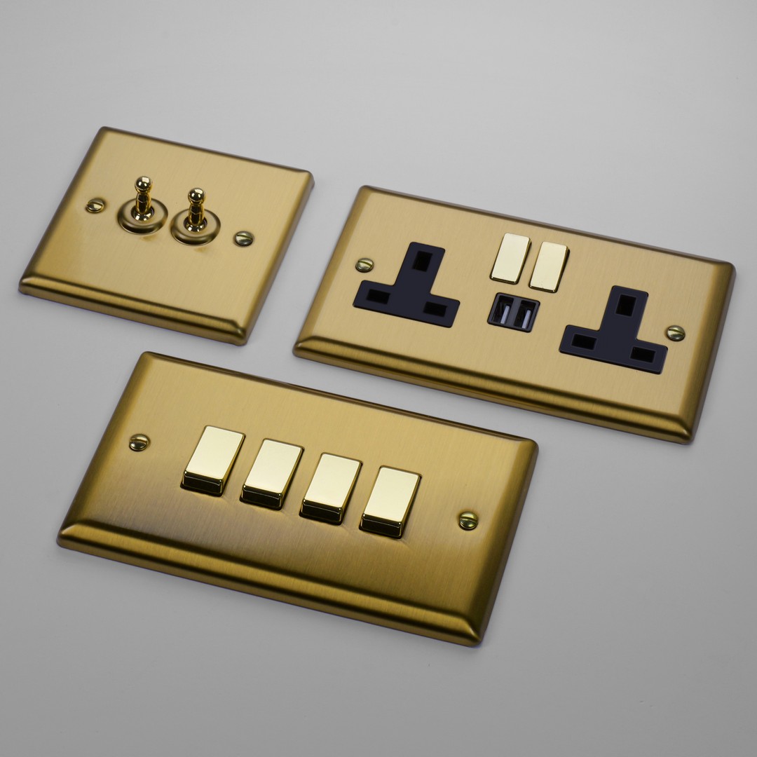 The Brushed Brass finish combines vintage style with a modern twist to suit both a traditional or modern decor. Black or white inserts and rockers are available, or choose polished brass rockers for an added touch of class. Varilight Decorative wiring accessories are British made and covered by the Varilight lifetime guarantee.