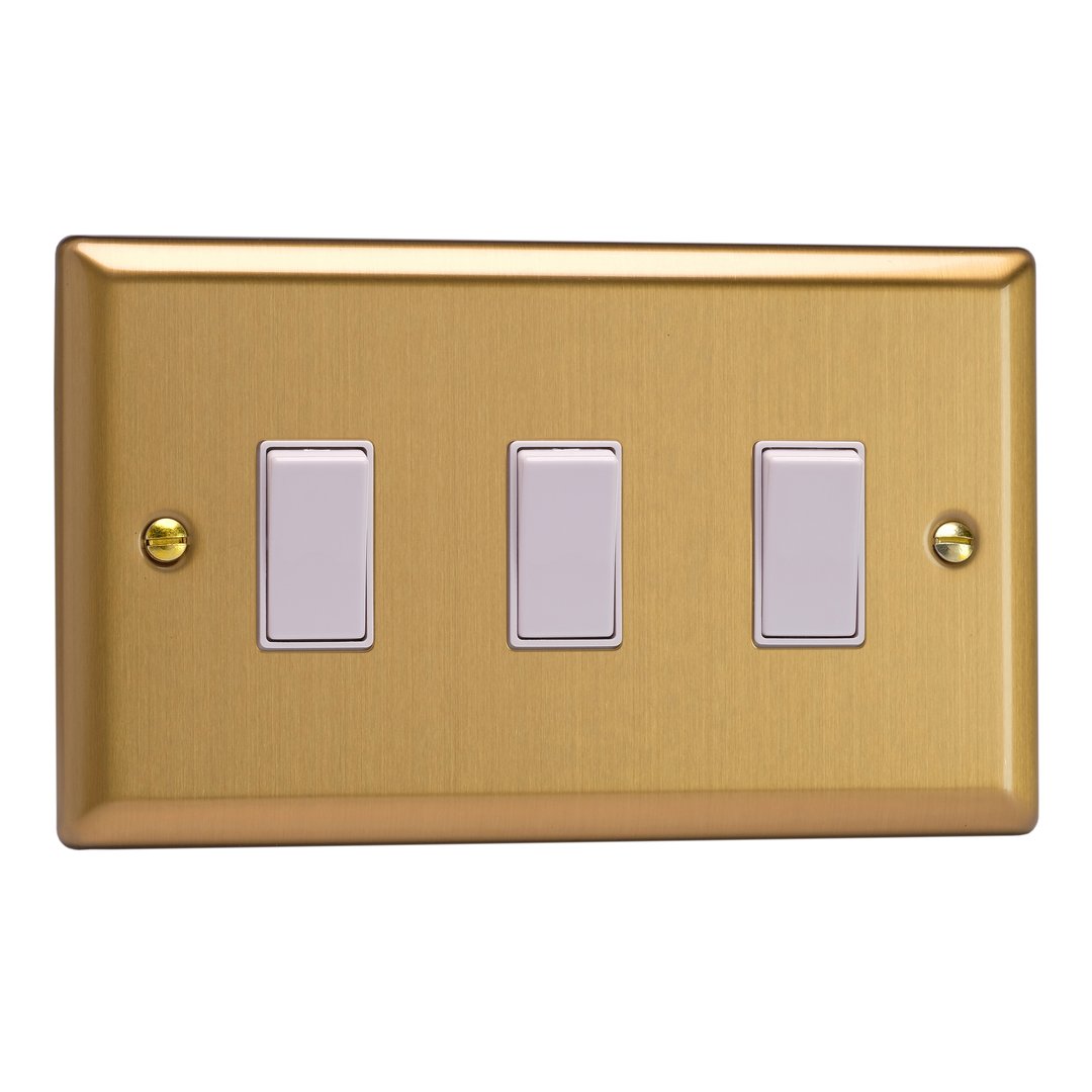 The Brushed Brass finish combines vintage style with a modern twist to suit both a traditional or modern decor. Black or white inserts and rockers are available, or choose polished brass rockers for an added touch of class. Varilight Decorative wiring accessories are British made and covered by the Varilight lifetime guarantee.