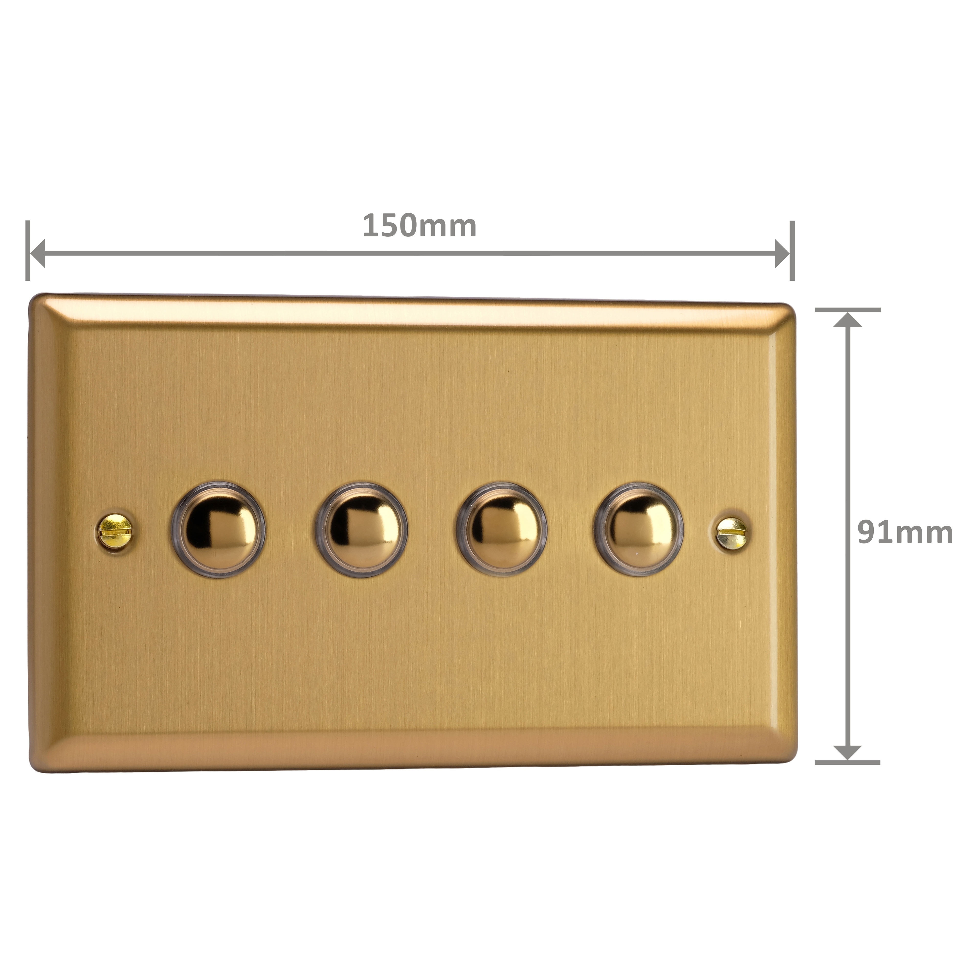 Product Description: 4-Gang 6A 1- or 2-Way Push On/Off Impulse Switch (Twin Plate)