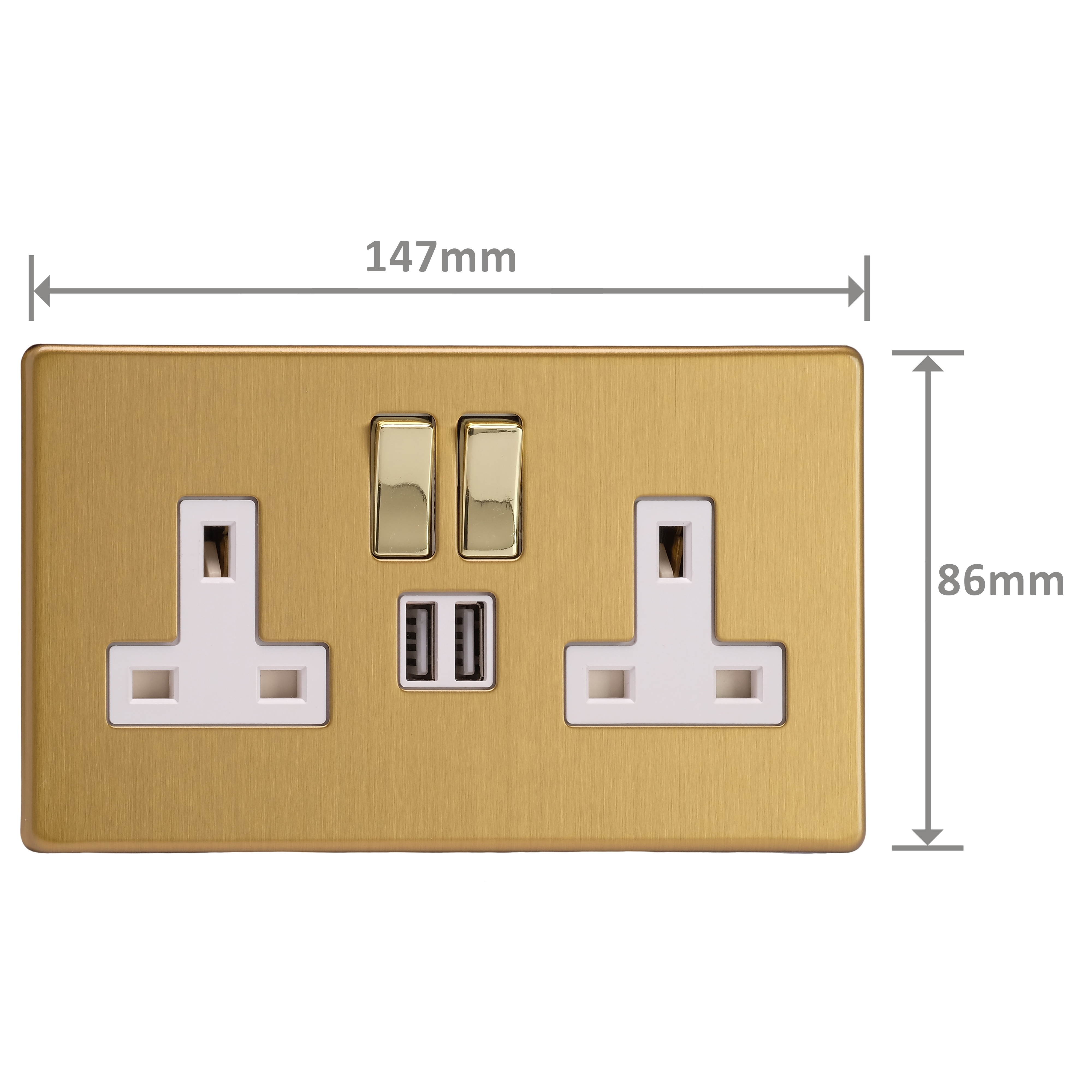 Product Description: Double Socket with 2 x 12W Shared USB A Charging Ports