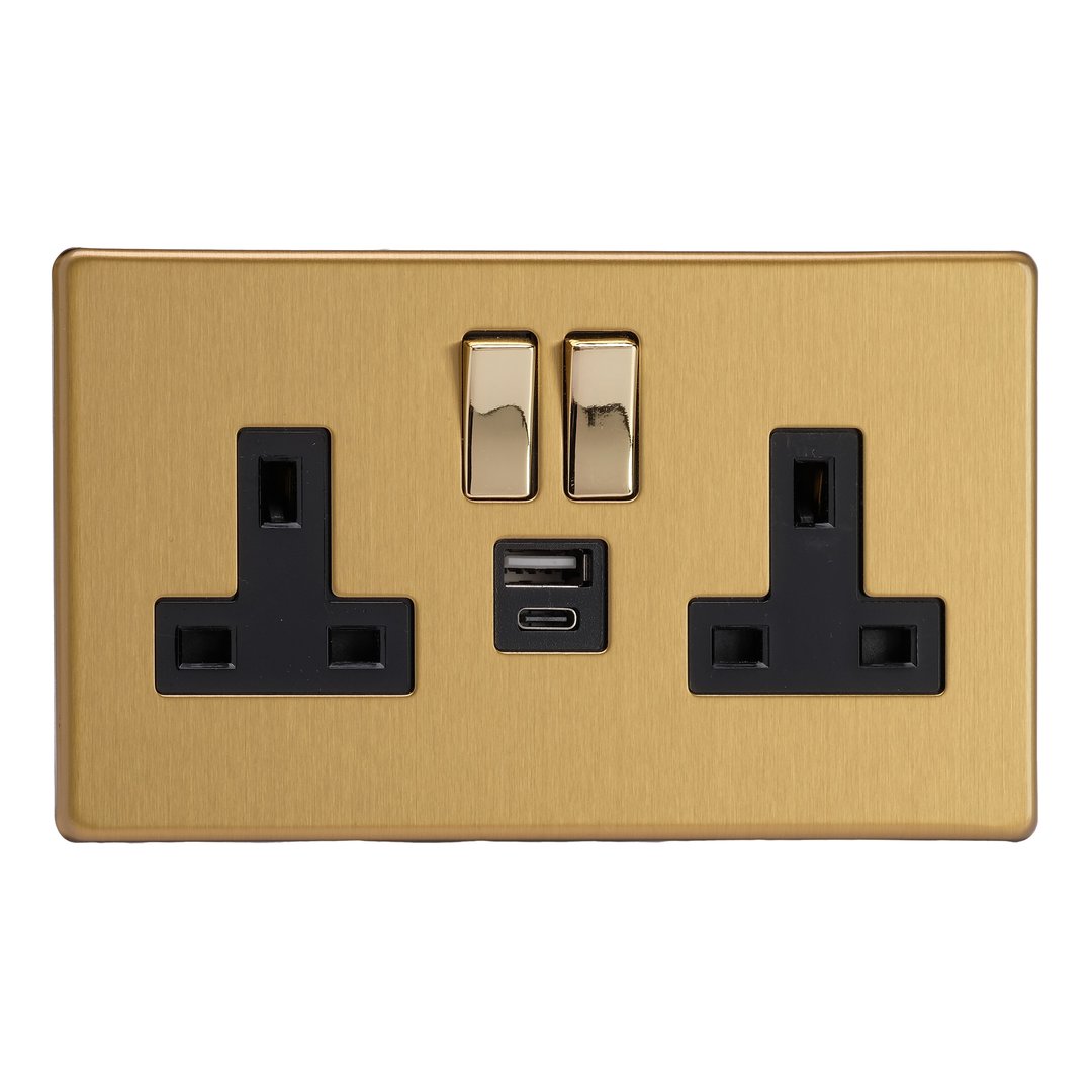 The Brushed Brass finish combines vintage style with a modern twist to suit both a traditional or modern decor. Black or white inserts are available, paired with polished brass rockers for an added touch of class. Varilight Decorative wiring accessories are British made and covered by the Varilight lifetime guarantee.