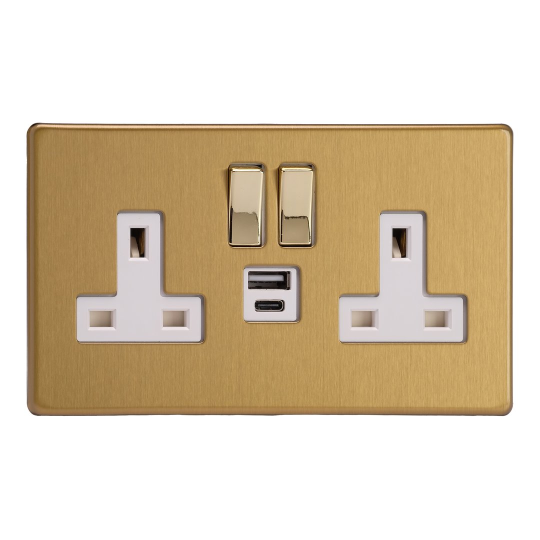 The Brushed Brass finish combines vintage style with a modern twist to suit both a traditional or modern decor. Black or white inserts are available, paired with polished brass rockers for an added touch of class. Varilight Decorative wiring accessories are British made and covered by the Varilight lifetime guarantee.