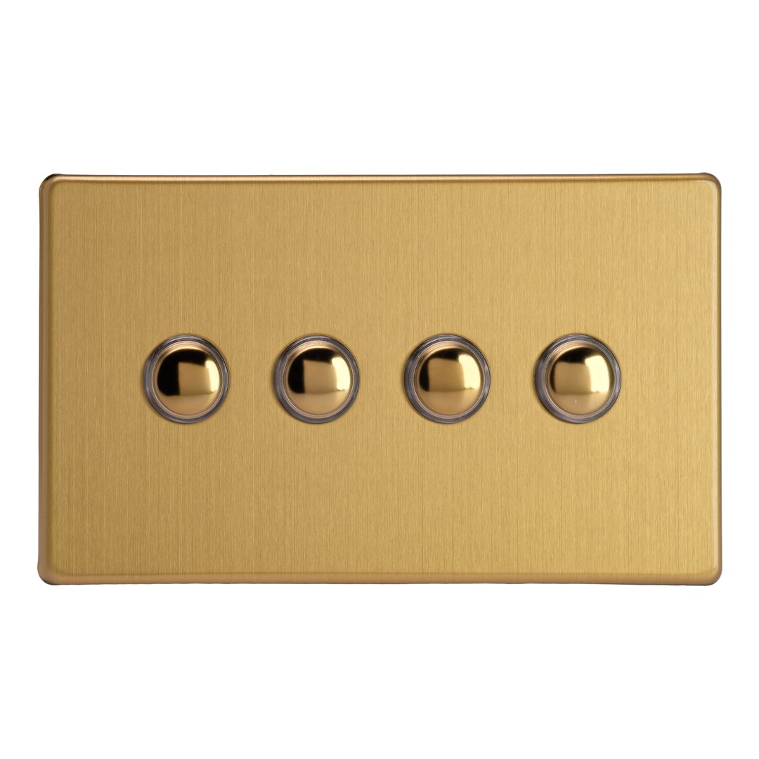 The Brushed Brass finish combines vintage style with a modern twist to suit both a traditional or modern decor. Black or white inserts are available, paired with polished brass rockers for an added touch of class. Varilight Decorative wiring accessories are British made and covered by the Varilight lifetime guarantee.
