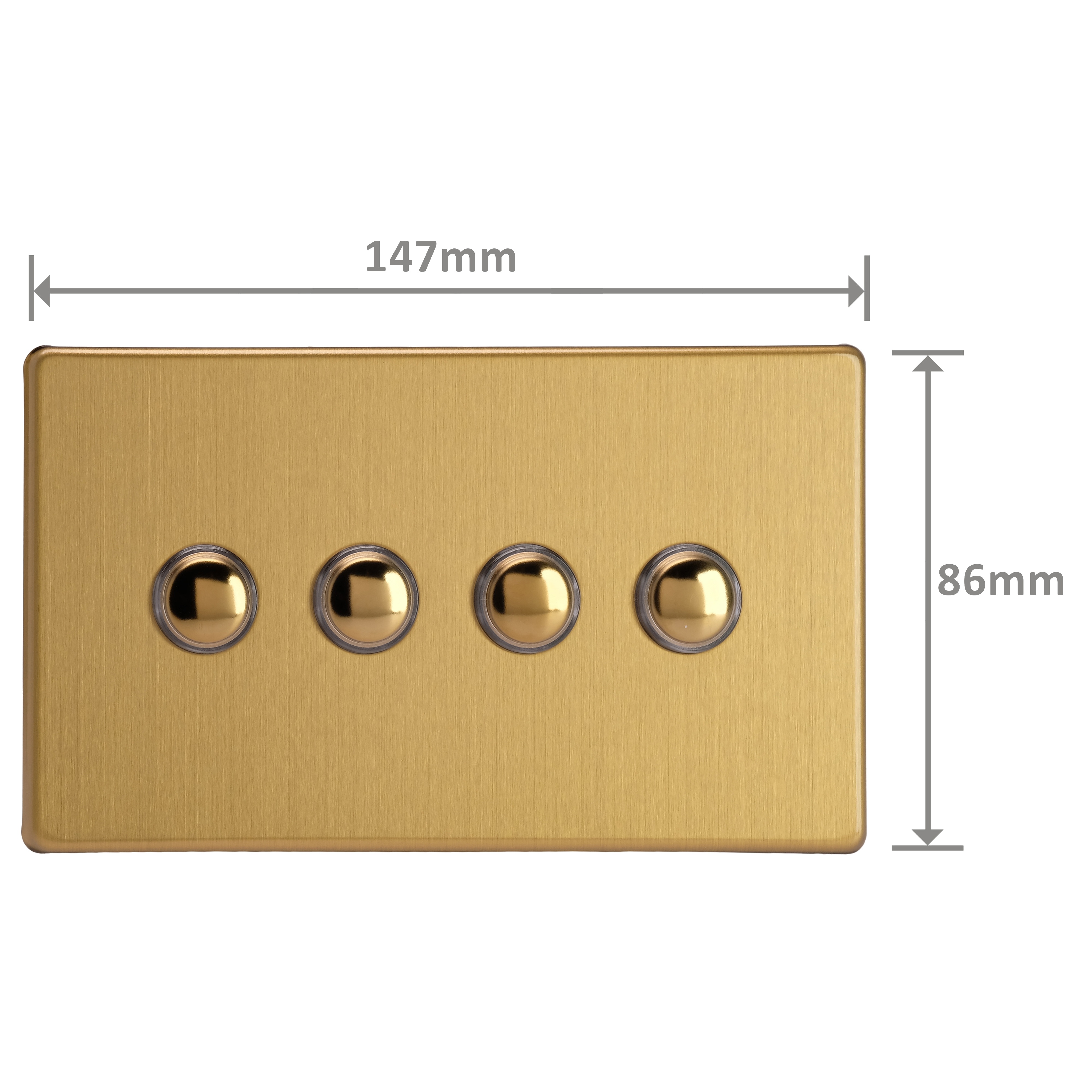 Product Description: 4-Gang 6A 1- or 2-Way Push On/Off Impulse Switch (Twin Plate)