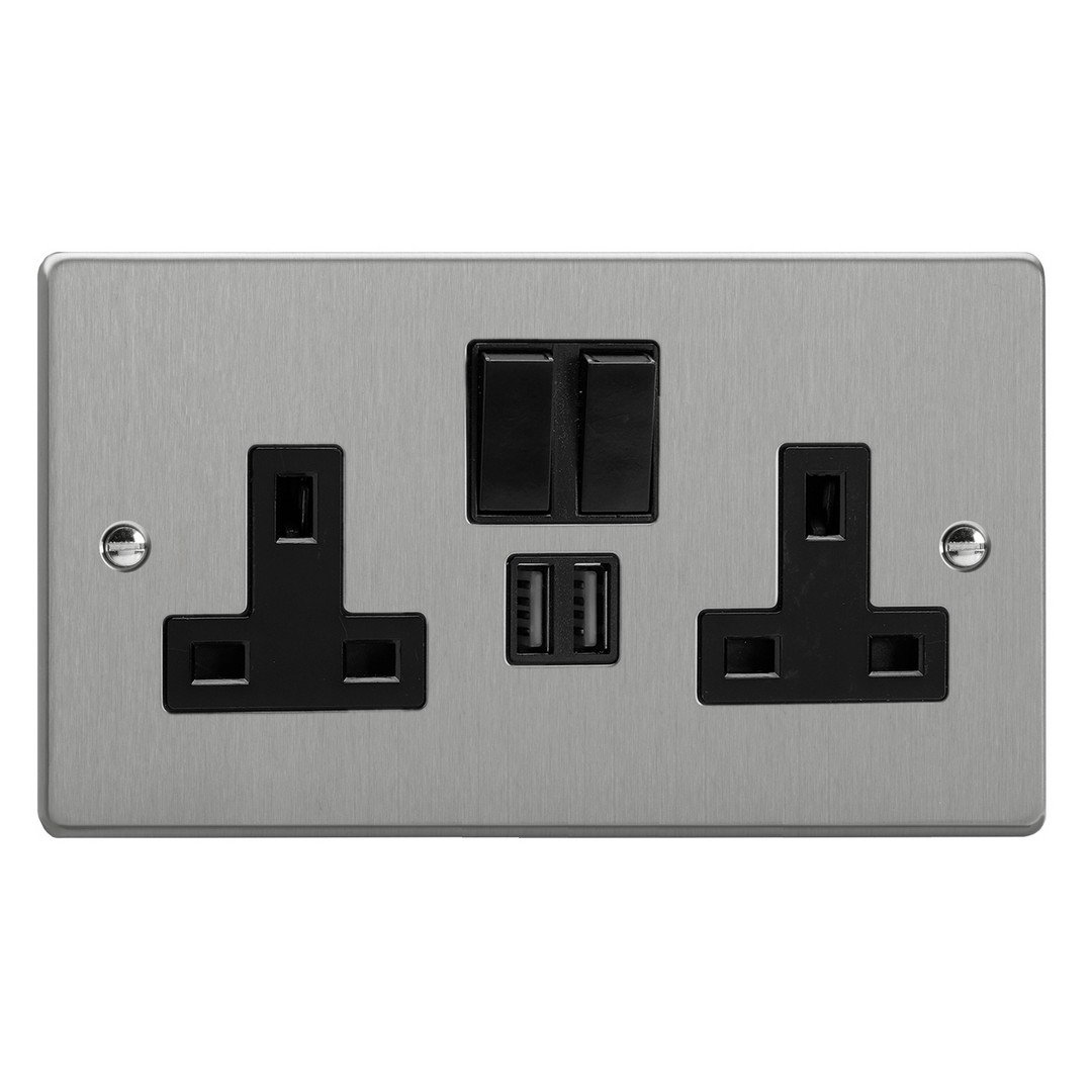 Product Description: Double Socket with 2 x 12W Shared USB A Charging Ports