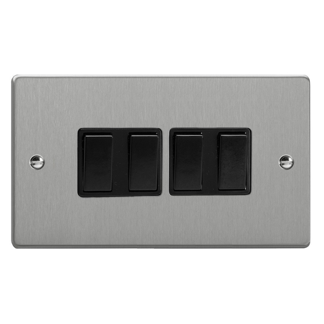 Product Description: 4-Gang 10A 1- or 2-Way Rocker Switch (Twin Plate)