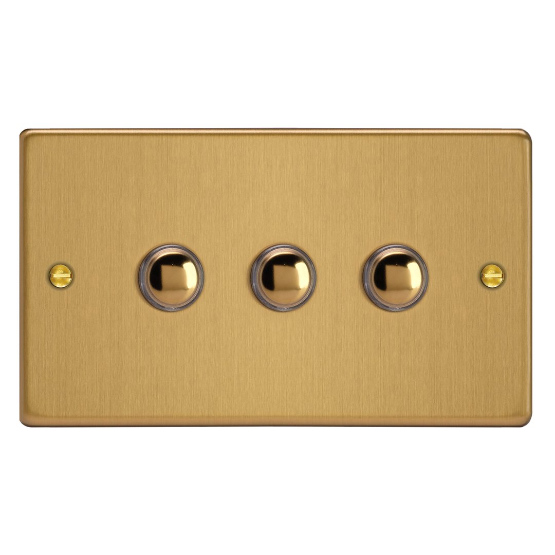 The Brushed Brass finish combines vintage style with a modern twist to suit both a traditional or modern decor. It is offered with either Black or white inserts and features matching Brass fixing screws. Varilight Decorative wiring accessories are British made and covered by the Varilight lifetime guarantee.