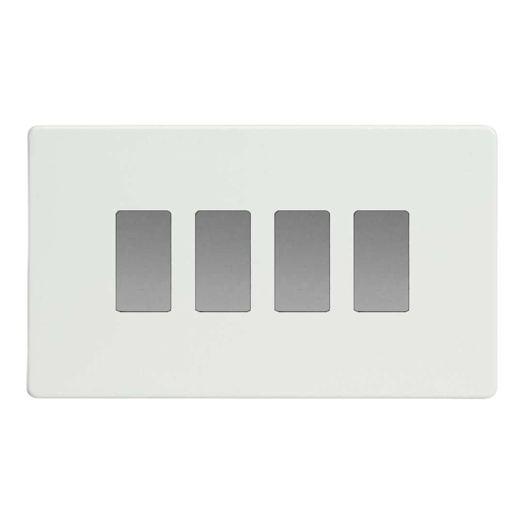 Product Description: 4-Gang Screwless PowerGrid Plate including Yoke (Twin Plate)
