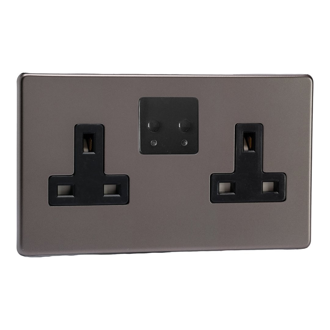 The Pewter finish makes a dramatic statement with its black inserts and contrasting polished chrome switch rockers, toggle and dimmer knobs. Varilight Decorative wiring accessories are British made and covered by the Varilight lifetime guarantee.