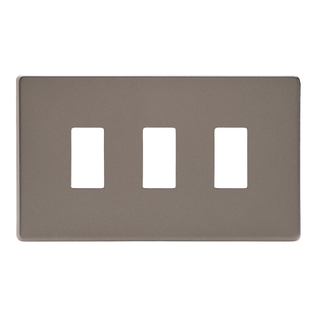 Product Description: 3-Gang Screwless PowerGrid Plate including Yoke (Twin Plate)