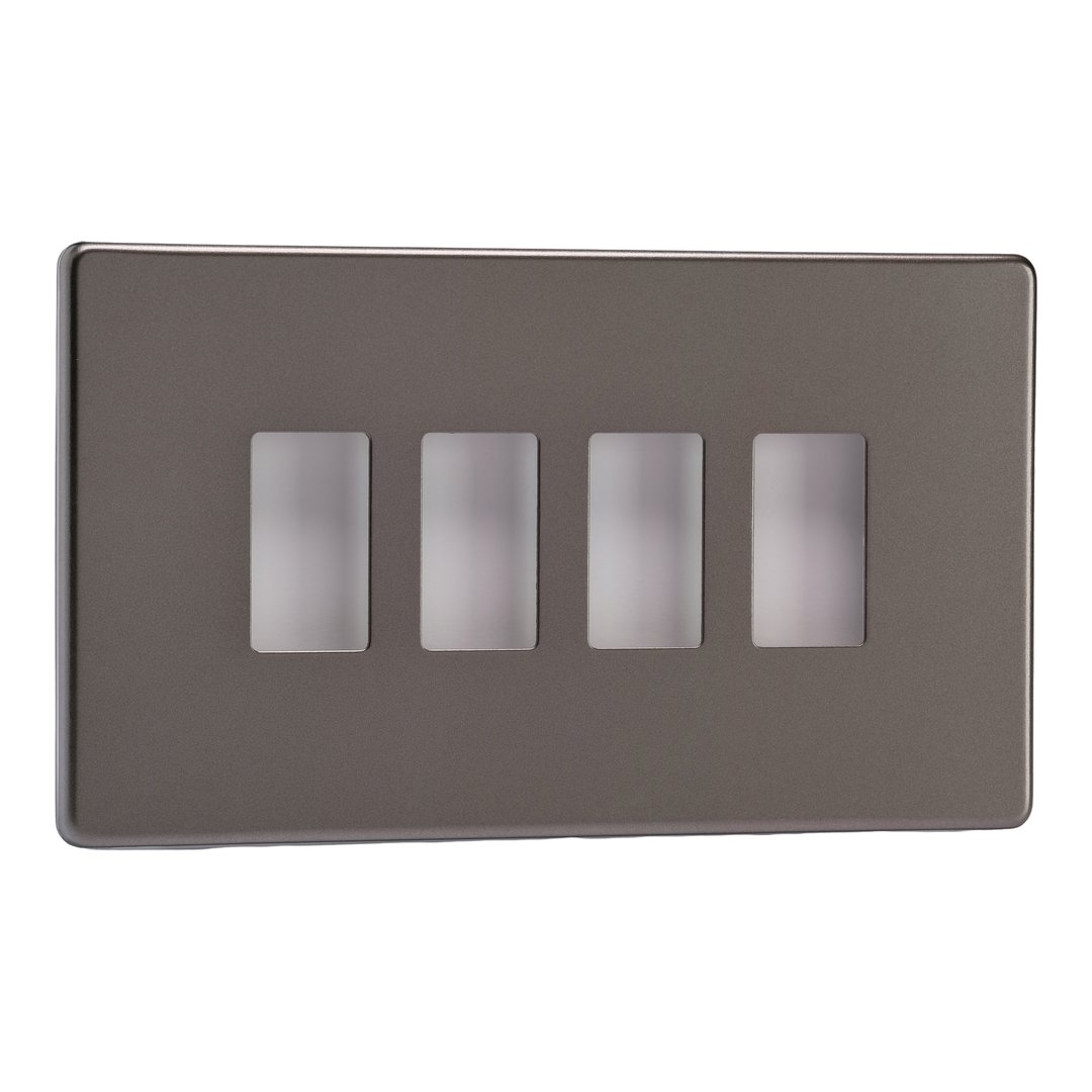 Product Description: 4-Gang Screwless PowerGrid Plate including Yoke (Twin Plate)