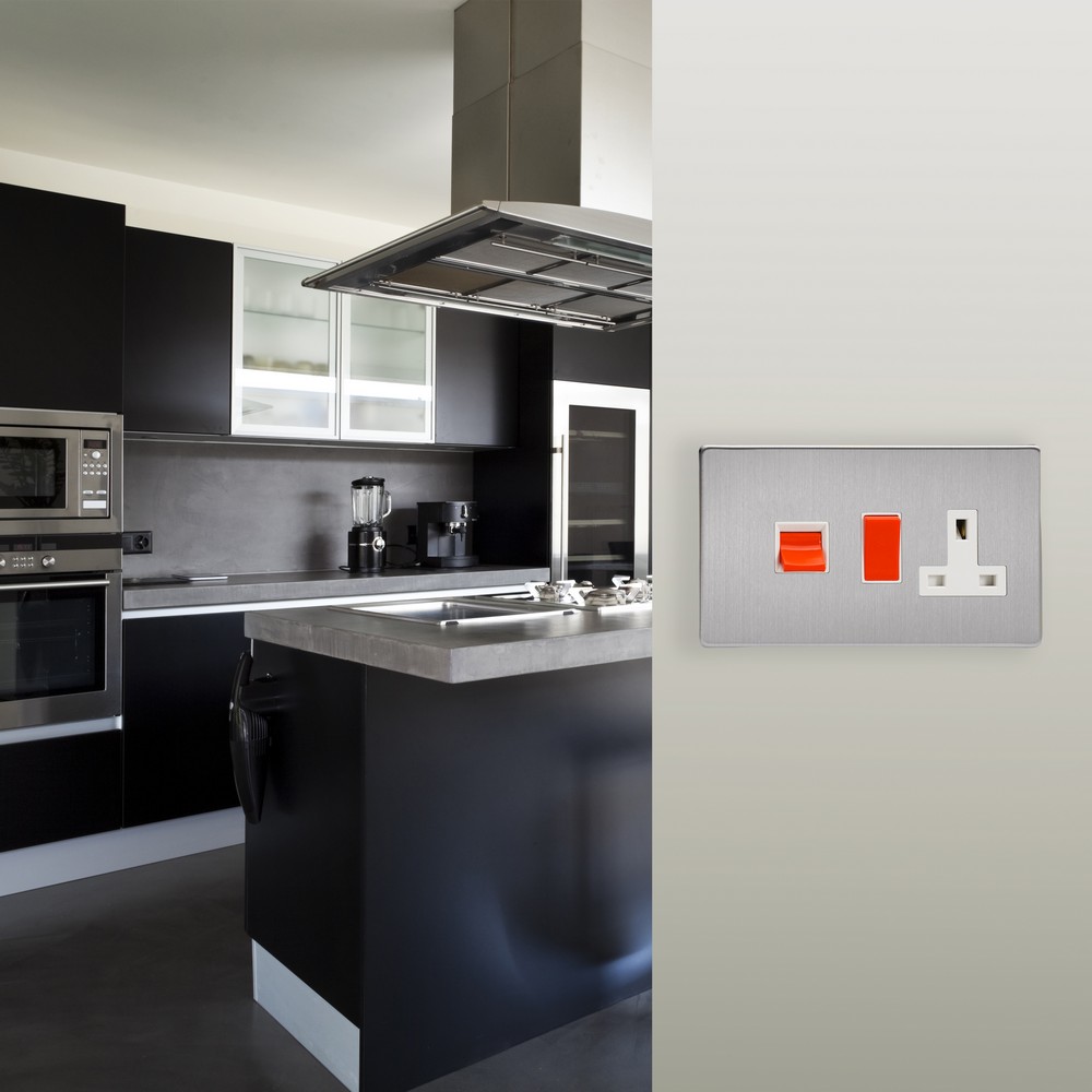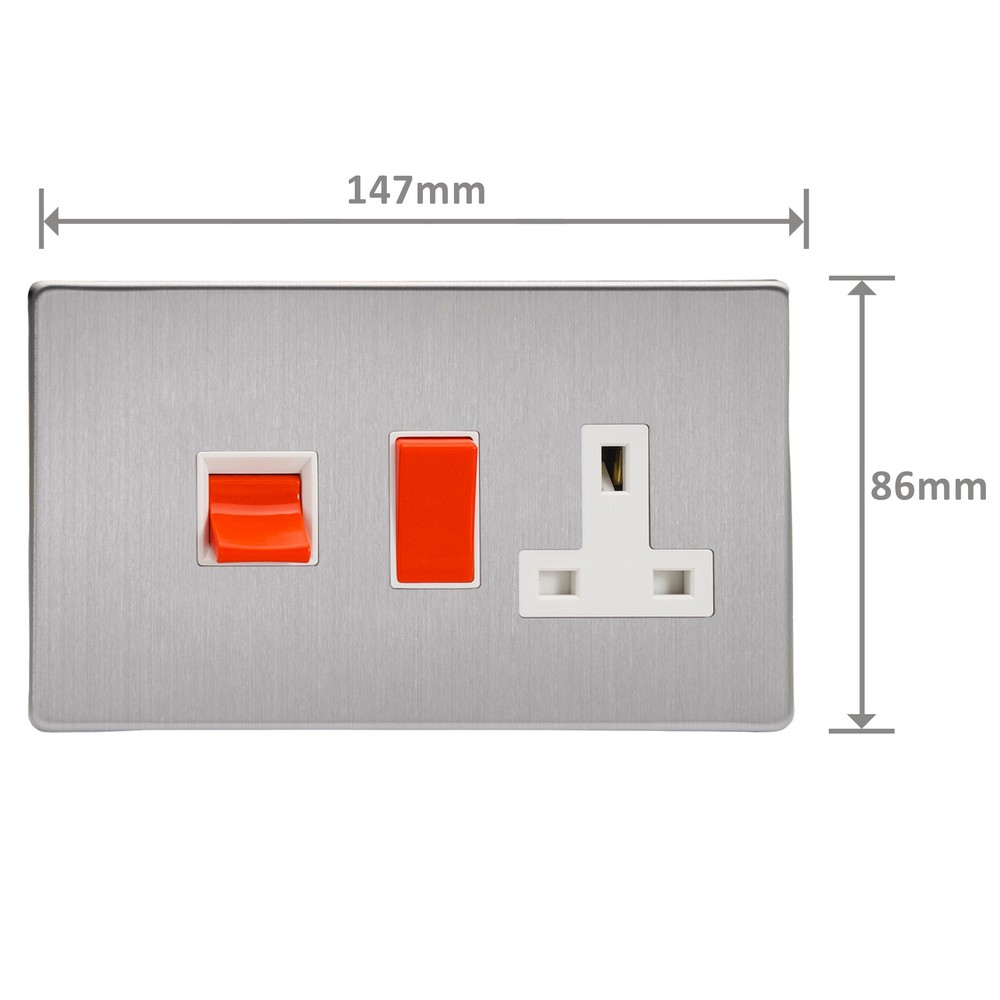 Product Description: 45A Cooker Panel with 13A Double Pole Switched Socket Outlet (Red Rocker)