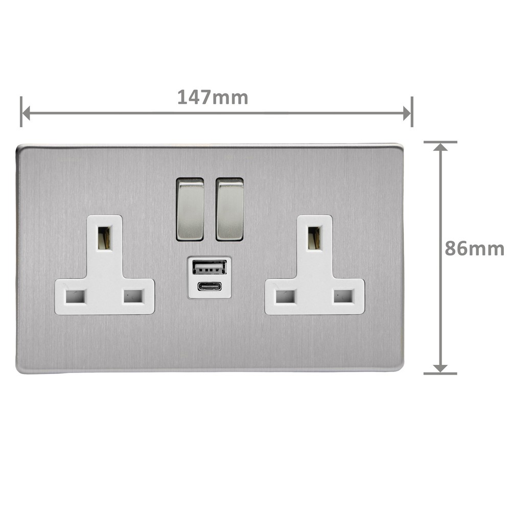 Product Description: Double Socket with 20W Shared USB A & C Charging Ports