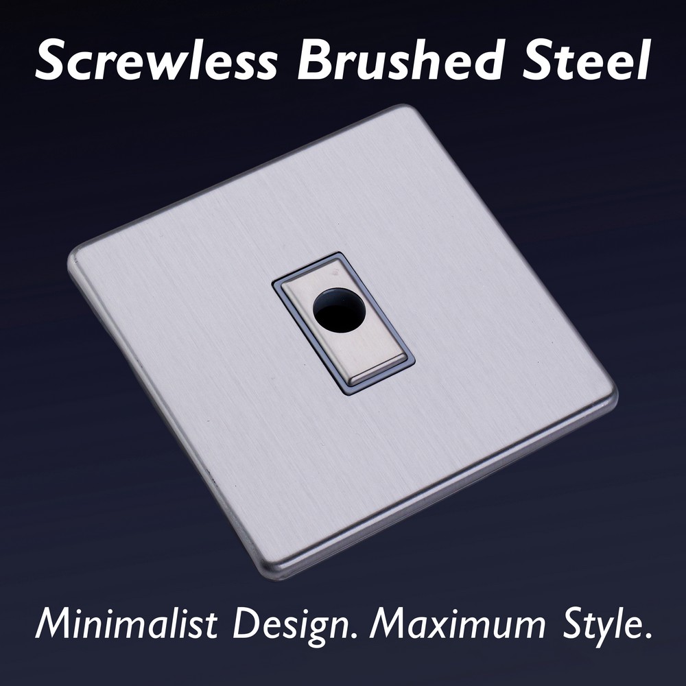 Stunning Brushed Steel is perennially popular with interior designers and all those wanting accessories with timeless appeal. Paired with black or white inserts and matching brushed steel rockers. Varilight Decorative wiring accessories are British made and covered by the Varilight lifetime guarantee.