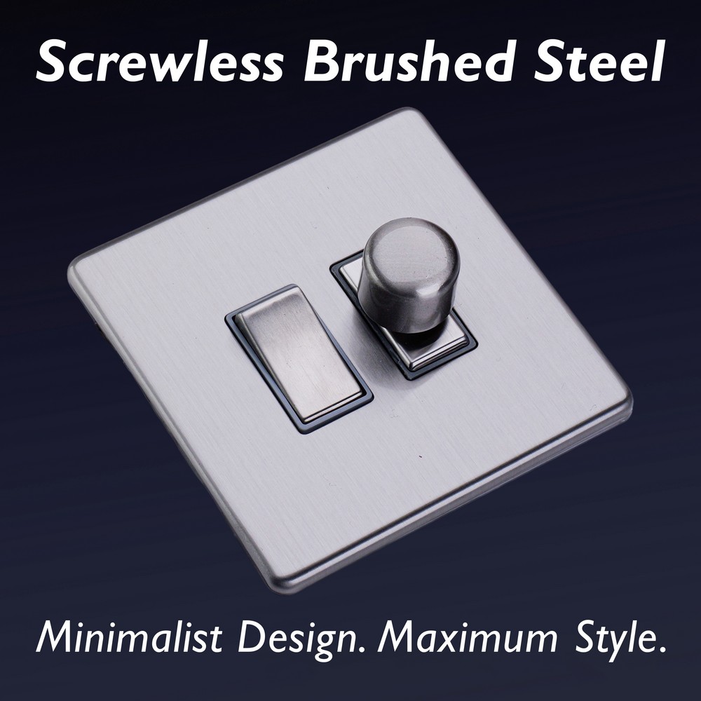 Stunning Brushed Steel is perennially popular with interior designers and all those wanting accessories with timeless appeal. Paired with black or white inserts and matching brushed steel rockers. Varilight Decorative wiring accessories are British made and covered by the Varilight lifetime guarantee.