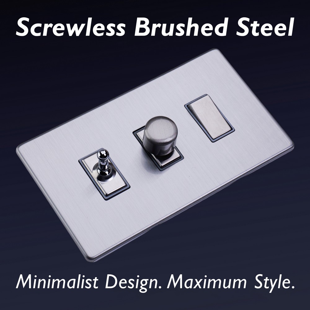 Screwless Low Profile: minimalist design with clip-on faceplates and hidden fixings for a smooth, modern look. The Screwless Metal faceplates are expertly manufactured in the UK to the highest standard.