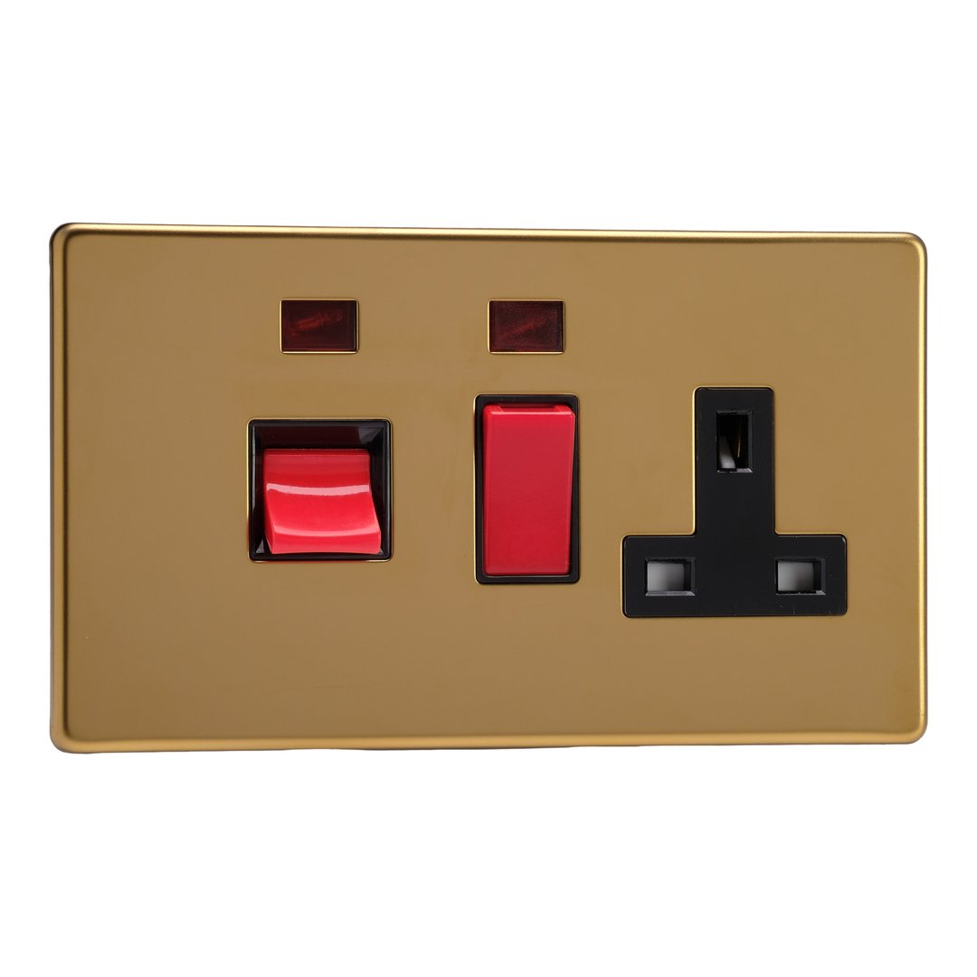 Product Description: 45A Cooker Panel with Neon with 13A Double Pole Switched Socket Outlet (Red Rocker)