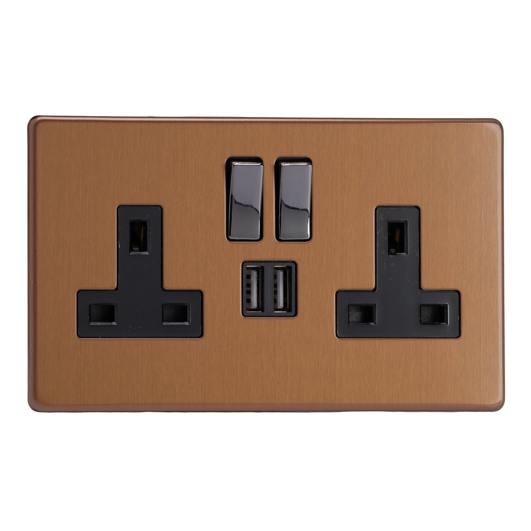 Offering a contemporary take on a classical finish, and paired with black inserts, Brushed Bronze suits both traditional and modern spaces. Varilight Decorative wiring accessories are British made and covered by the Varilight lifetime guarantee.
