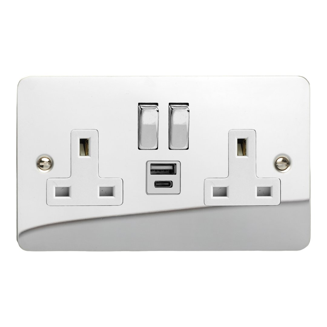 Product Description: Double Socket with 20W Shared USB A & C Charging Ports