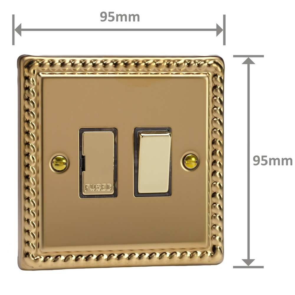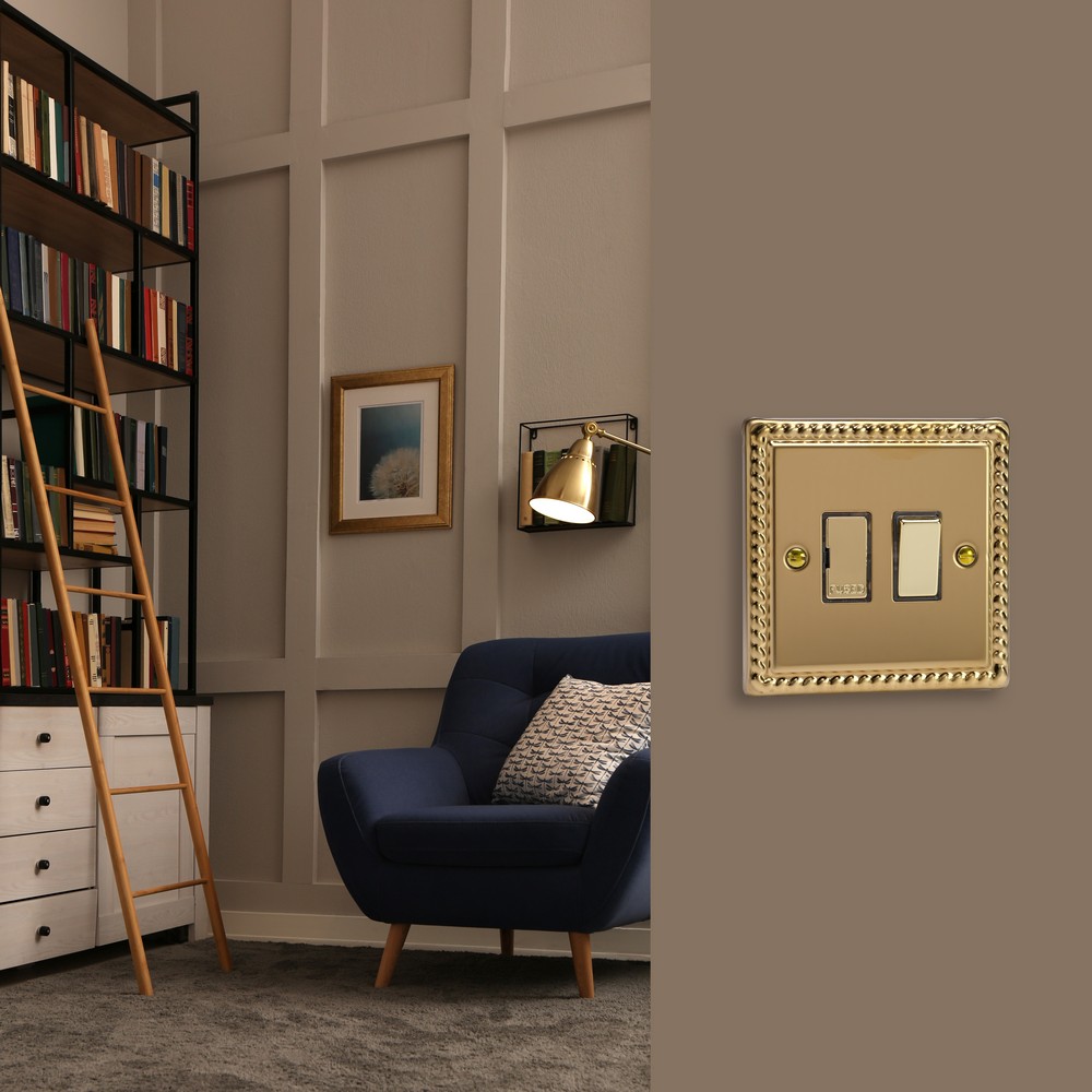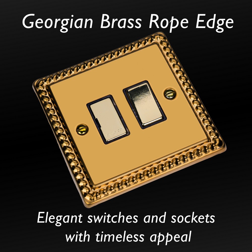 Polished Brass remains one of the most versatile finishes and is paired here with Georgian rope edged faceplates for an enduringly classical appeal. Varilight Decorative wiring accessories are British made and covered by the Varilight lifetime guarantee.