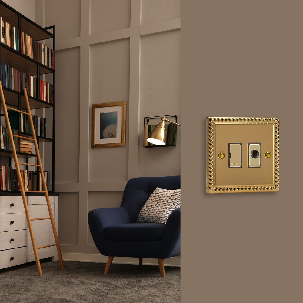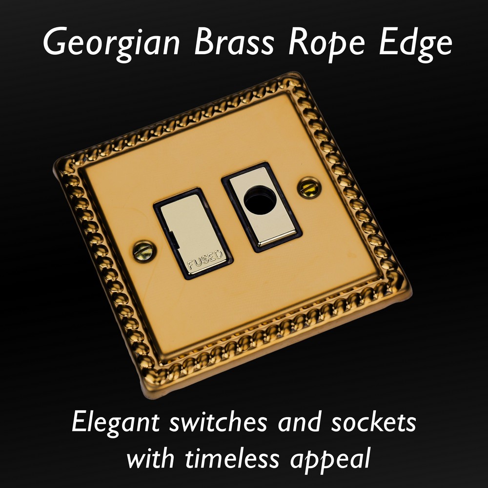 Polished Brass remains one of the most versatile finishes and is paired here with Georgian rope edged faceplates for an enduringly classical appeal. Varilight Decorative wiring accessories are British made and covered by the Varilight lifetime guarantee.