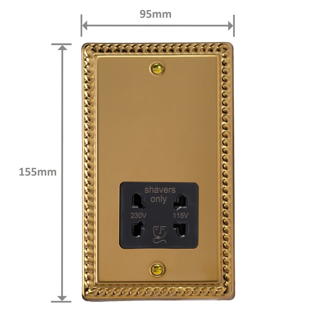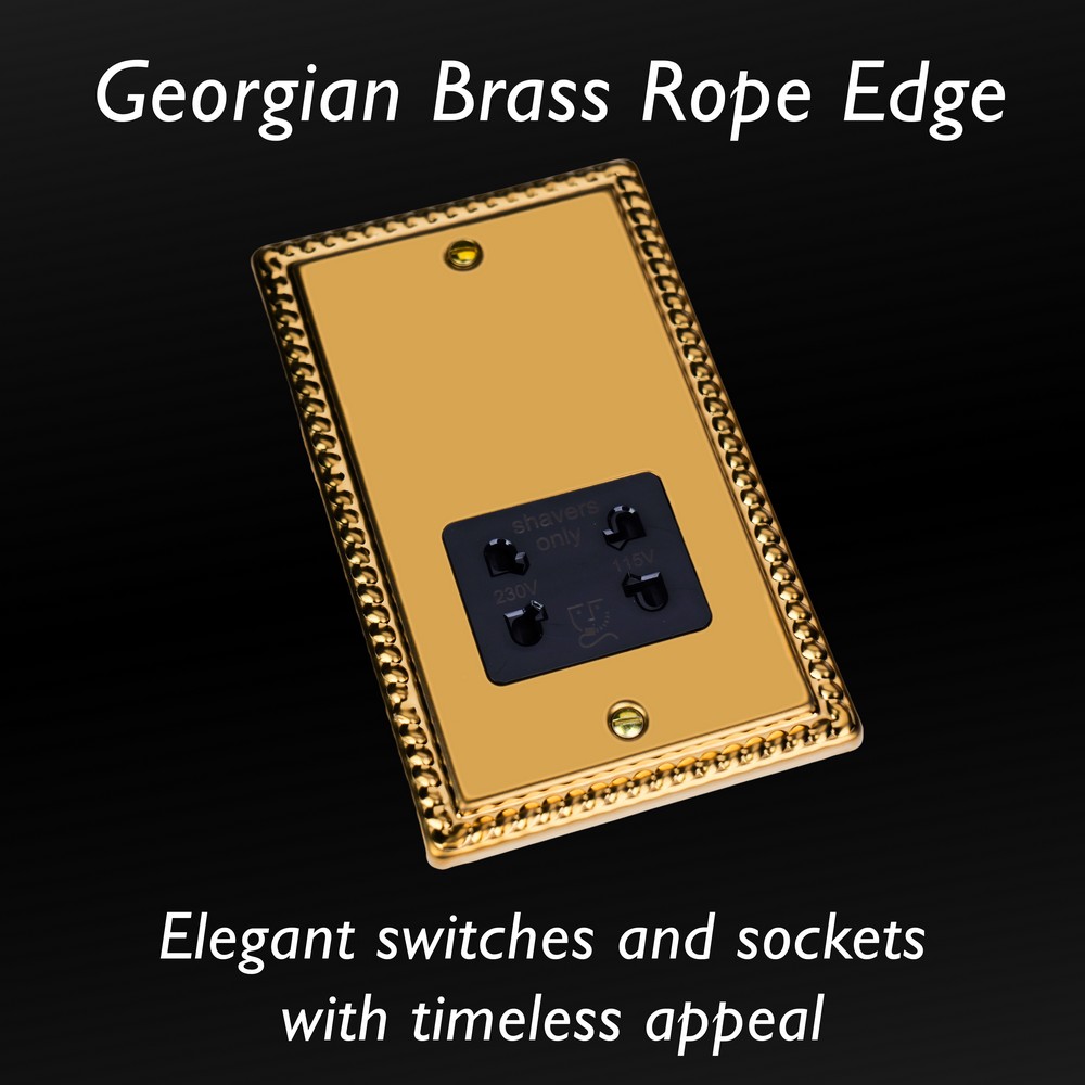Polished Brass remains one of the most versatile finishes and is paired here with Georgian rope edged faceplates for an enduringly classical appeal. Varilight Decorative wiring accessories are British made and covered by the Varilight lifetime guarantee.