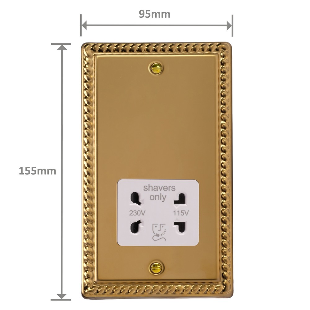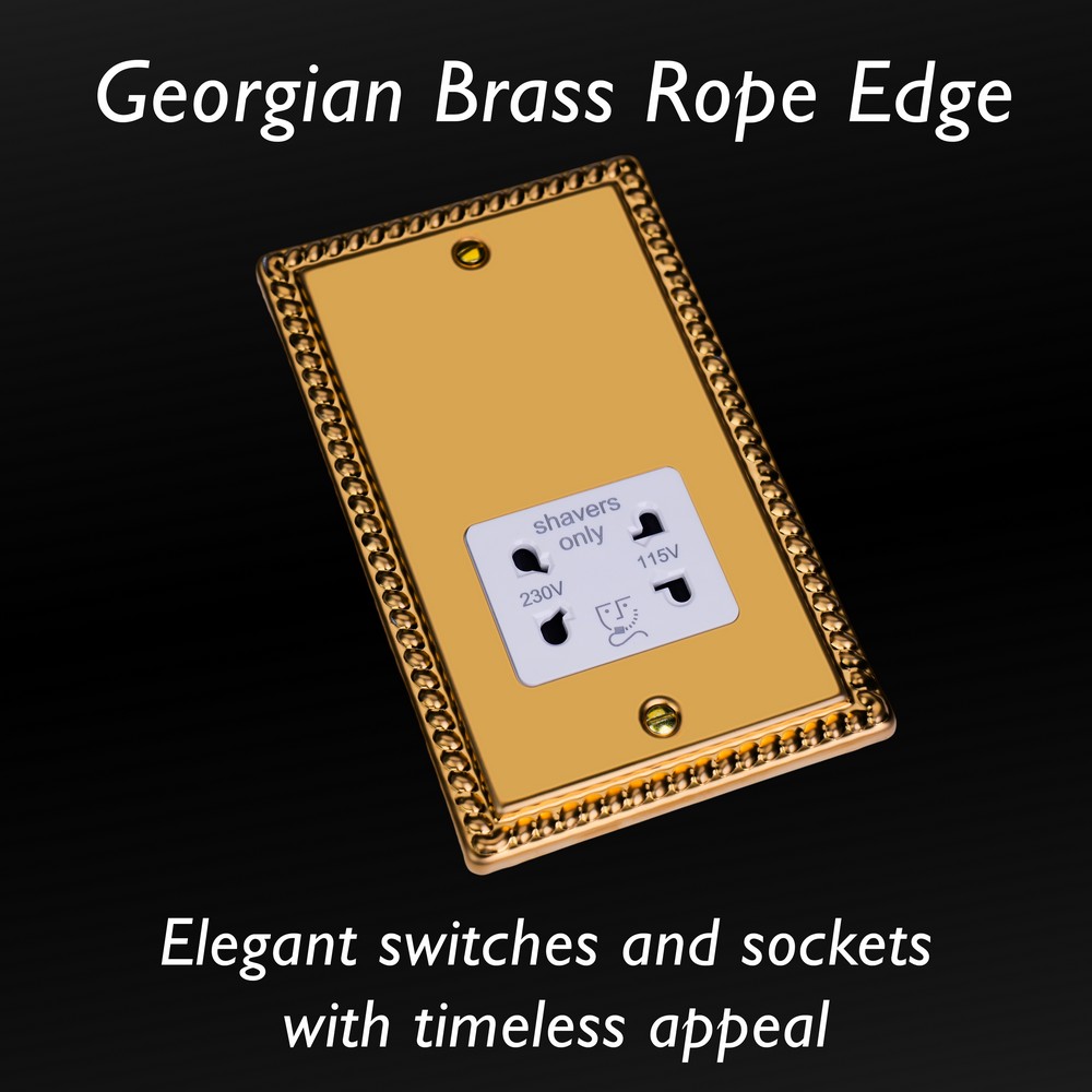 Polished Brass remains one of the most versatile finishes and is paired here with Georgian rope edged faceplates for an enduringly classical appeal. Varilight Decorative wiring accessories are British made and covered by the Varilight lifetime guarantee.
