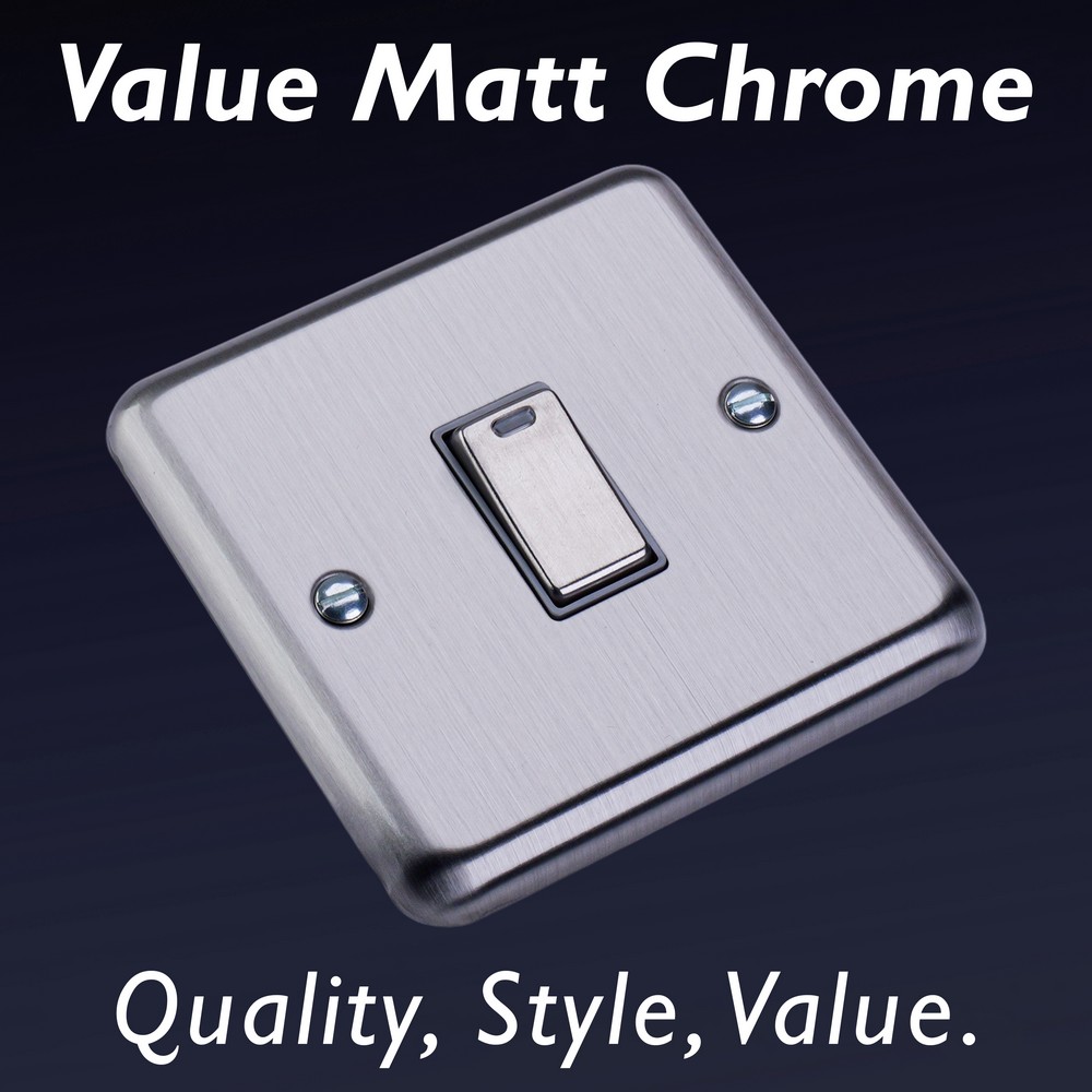 Matt Chrome offers unbeatable value for those seeking a beautiful Decorative finish at a great price point. Choose between black, white or matching metal rockers. Varilight Decorative wiring accessories are British made and covered by the Varilight lifetime guarantee.