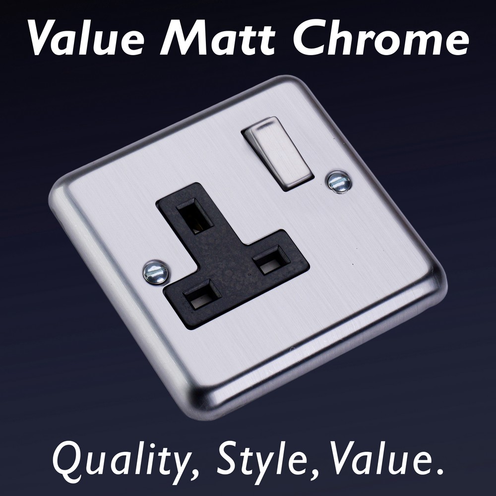 Matt Chrome offers unbeatable value for those seeking a beautiful Decorative finish at a great price point. Choose between black, white or matching metal rockers. Varilight Decorative wiring accessories are British made and covered by the Varilight lifetime guarantee.