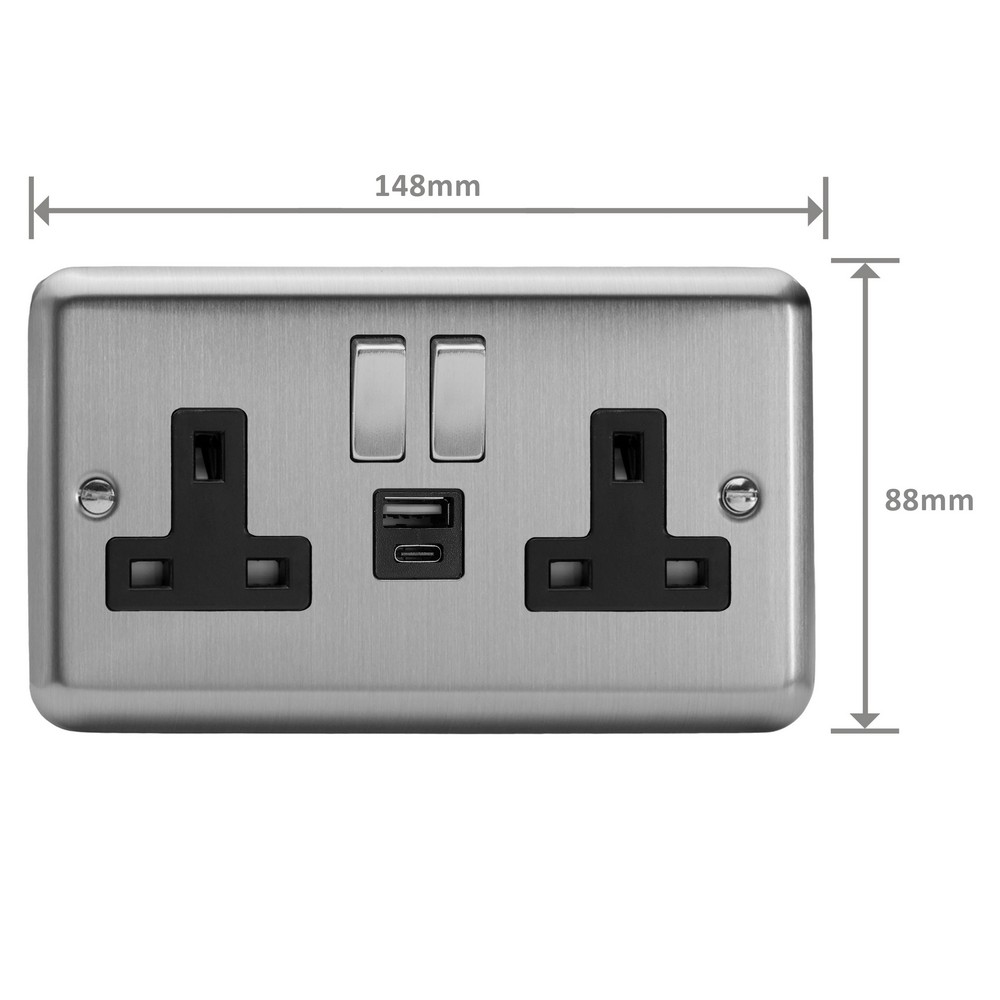 Product Description: Double Socket with 20W Shared USB A & C Charging Ports