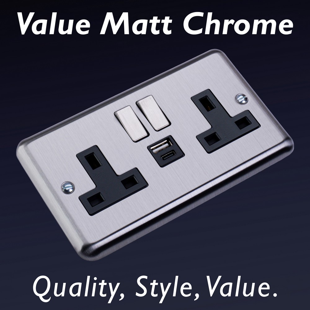 Matt Chrome offers unbeatable value for those seeking a beautiful Decorative finish at a great price point. Choose between black, white or matching metal rockers. Varilight Decorative wiring accessories are British made and covered by the Varilight lifetime guarantee.