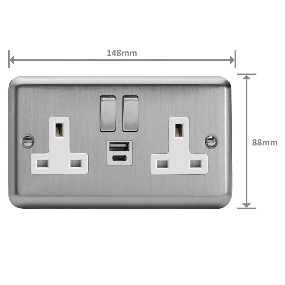 Product Description: Double Socket with 20W Shared USB A & C Charging Ports