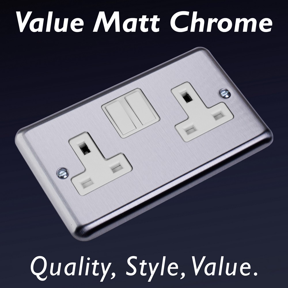 Matt Chrome offers unbeatable value for those seeking a beautiful Decorative finish at a great price point. Choose between black, white or matching metal rockers. Varilight Decorative wiring accessories are British made and covered by the Varilight lifetime guarantee.