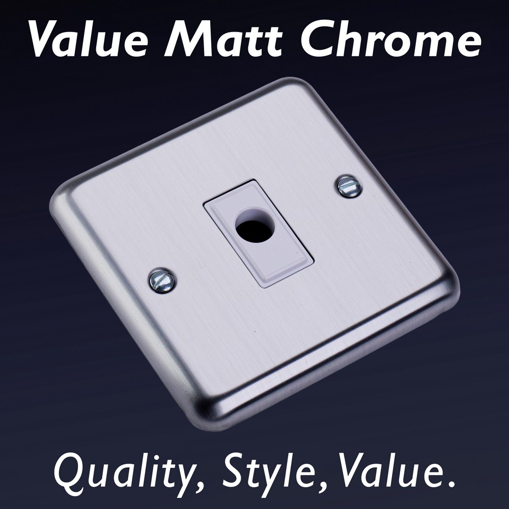 Matt Chrome offers unbeatable value for those seeking a beautiful Decorative finish at a great price point. Choose between black, white or matching metal rockers. Varilight Decorative wiring accessories are British made and covered by the Varilight lifetime guarantee.