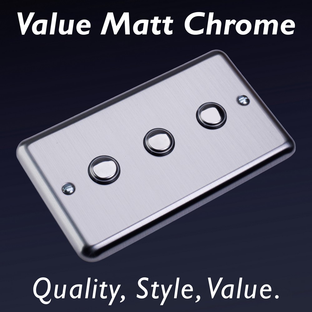 Matt Chrome offers unbeatable value for those seeking a beautiful Decorative finish at a great price point. Choose between black, white or matching metal rockers. Varilight Decorative wiring accessories are British made and covered by the Varilight lifetime guarantee.