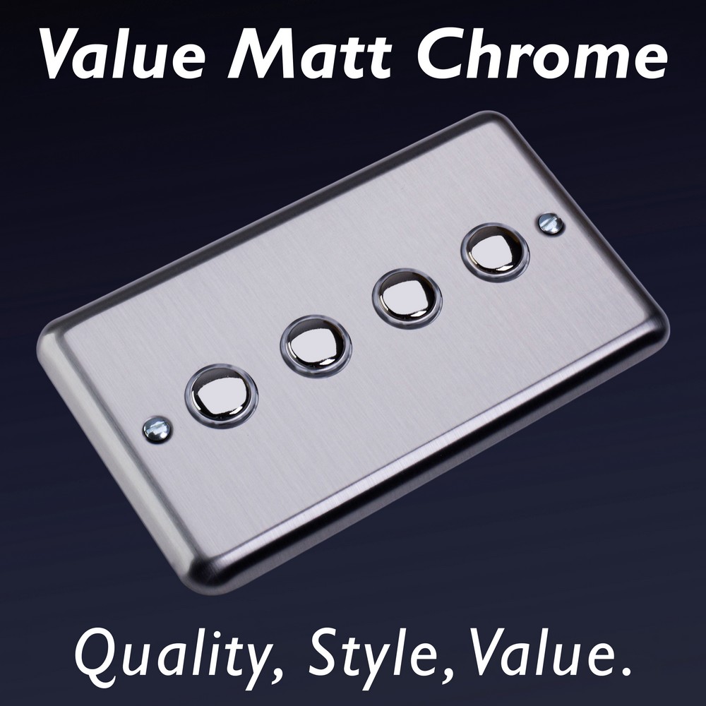Matt Chrome offers unbeatable value for those seeking a beautiful Decorative finish at a great price point. Choose between black, white or matching metal rockers. Varilight Decorative wiring accessories are British made and covered by the Varilight lifetime guarantee.