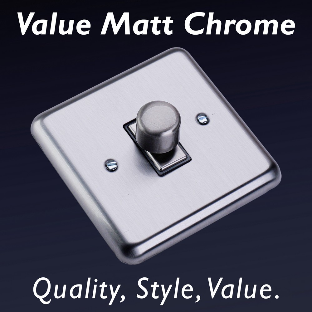 Matt Chrome offers unbeatable value for those seeking a beautiful Decorative finish at a great price point. Choose between black, white or matching metal rockers. Varilight Decorative wiring accessories are British made and covered by the Varilight lifetime guarantee.
