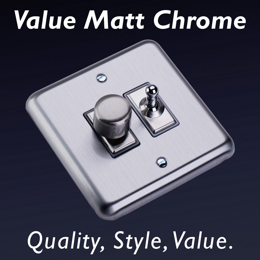 Matt Chrome offers unbeatable value for those seeking a beautiful Decorative finish at a great price point. Choose between black, white or matching metal rockers. Varilight Decorative wiring accessories are British made and covered by the Varilight lifetime guarantee.