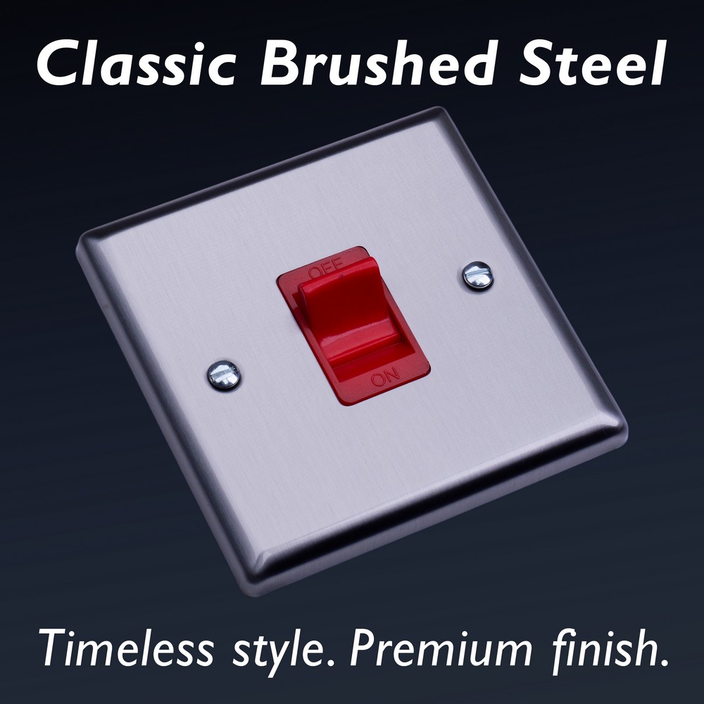 With its clean, understated style, Brushed Steel brings effortless sophistication to any room ? a finish chosen by designers for its versatility.Varilight Decorative wiring accessories are British made and covered by the Varilight lifetime guarantee.